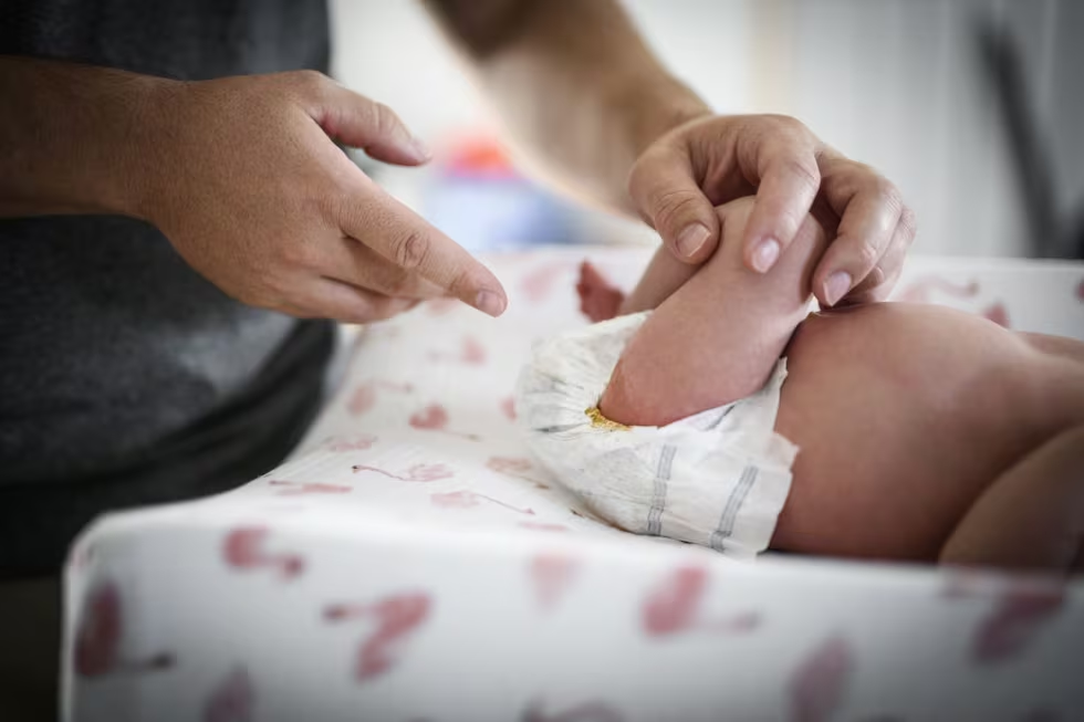 Άπλωσα την καθαρή πάνα, ακούμπησα το μωρό απαλά και ξεκούμπωσα την παλιά.