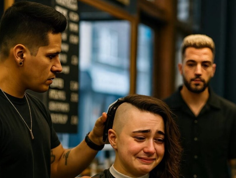 Φόρεσε το αγαπημένο της πουλόβερ και κατευθύνθηκε στο κουρείο της γειτονιάς, εκείνο που επισκεπτόταν χρόνια, με τους τατουαρισμένους, σκληροτράχηλους άντρες που δούλευαν μέσα. Μόλις μπήκε, οι κουρείς κατάλαβαν από το βλέμμα της πως κάτι δεν πήγαινε καλά. Κάθισε στην καρέκλα, τύλιξε τα χέρια γύρω από το σώμα της και με φωνή που έτρεμε είπε: