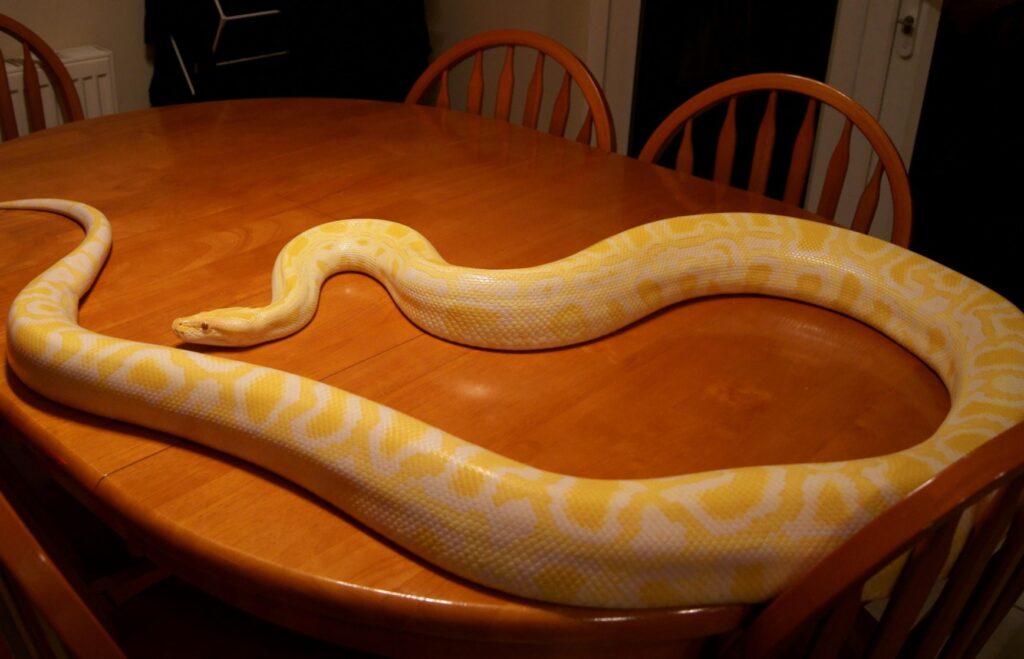 — Βλέπετε, — είπε ήρεμα, — αυτό δεν είναι ένδειξη στοργής. Όταν ένας μεγάλος πύθωνας σταματά να τρώει και τεντώνεται δίπλα στο σώμα του ιδιοκτήτη του, στην πραγματικότητα… μετρά τη λεία του. Ελέγχει αν το μέγεθος είναι κατάλληλο. Και όταν τυλίγεται, πρόκειται για πρόβα στραγγαλισμού. Έχετε μια ενήλικη θηλυκιά — δυνατή, ικανή να κόψει την αναπνοή ενός ανθρώπου. Τέτοια περιστατικά είναι σπάνια, αλλά συμβαίνουν. Ειλικρινά, η Σάφραν σας προετοιμαζόταν να σας καταπιεί. Η συμβουλή μου: απομονώστε τη αμέσως και, καλύτερα, παραδώστε τη σε ειδικούς.