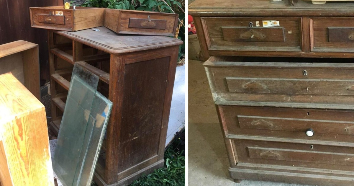 Ο σημερινός ανακαινιστής βρήκε μια παλιά συρταριέρα πεταμένη σε μια σωρό σκουπιδιών και αποφάσισε